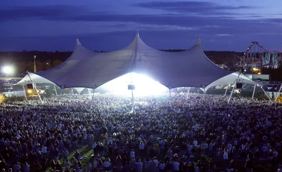 At the Darien Lakes Theme Park in Buffalo, New York State, Architen Landrell installed a vast PVC coated polyester canopy to cover an amphitheatre.