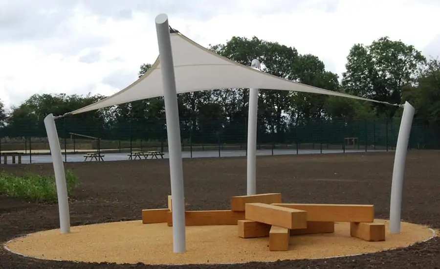 As a school environment, it was important to minimise any dangers that a hard structure in the playground might pose. Unlike our current standard product these Dune have thicker, curved masts which can support the full weight and tension of the tensile fabric canopy without any need for tie down cables. They are the latest addition to our range of Standard Products.